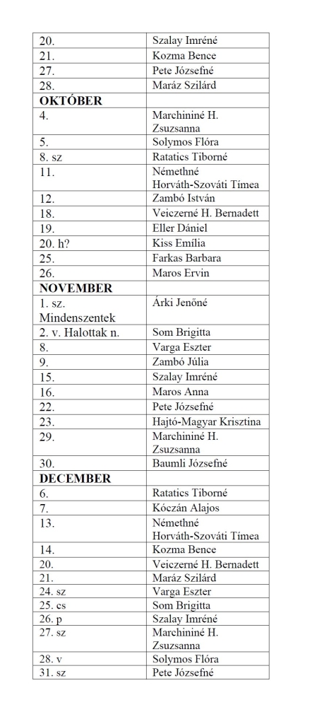 - a 10:00 órakor kezdődő szentmisében az 5-35. házassági évfordulójukat ünneplők,
